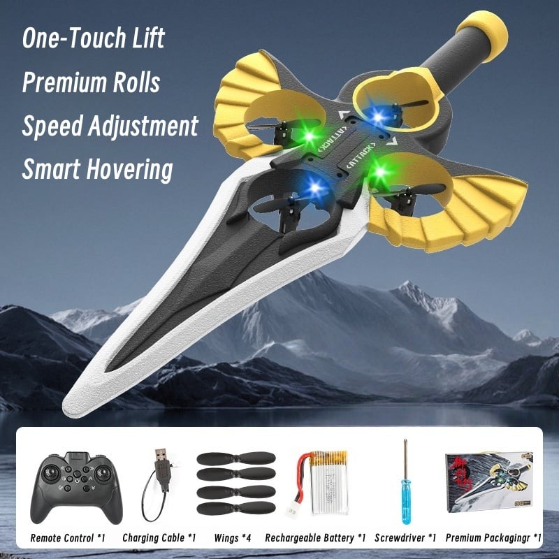 Soar like a sword master! This ultra-light RC flying toy blends thrilling aerial stunts, simple controls, and durable safety features — perfect for kids, beginners, and outdoor fun lovers.